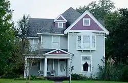 The Henry McKenzie House, also known locally as the Dalrymple House, is a historic house at 324 East Main Street in Prescott, Arkansas. The two story wood-frame house was built in 1902 by Henry McKenzie, and is said to have been designed by Charles L. Thompson, although there is no supporting evidence for this claim. The house is one of the best-kept transitional Queen Anne/Colonial Revival houses in Prescott, with decorative shingle siding in its gable ends and diamond-pane windows. Its most significant alteration was the removal of Ionic columns from its porch during renovations in the 1950s which including enclosing the porch.[2]