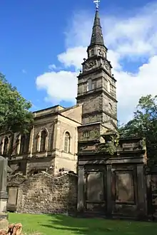 St Cuthberts Church, Edinburgh as seen from Moncrieff-Wellwood's grave