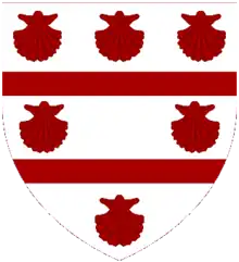 From an Eastern crown Or a horse's head Sable mane Or charged on the neck with a scallop Or.