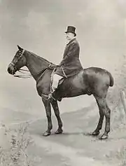 • Lady Blanche Linnie Somerset (1897–1968), married John Eliot, 6th Earl of St Germans (11 June 1890 – 31 March 1922), who died in a riding accident during a steeplechase, aged 31, leaving as issue two daughters.[1] On 15 July 1924, she married George Francis Valentine Scott Douglas (14 February 1898 – 12 June 1930), who died from a polo injury.[1] They had one son who died as the last of the Douglas baronets of Maxwell in 1969. Her descendants are the sole surviving descendants of the 9th Duke. Lady Blanche's eldest surviving grandson, David John Seyfried-Herbert, 19th Baron Herbert, eventually had the barony of Herbert called out of abeyance in his favour in 2002, after eighteen years.