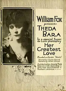 Her Greatest Love is a 1917 American silent drama film directed by J. Gordon Edwards, starring Theda Bara, and based on the 1880 novel Moths by Ouida. This film is now considered to be lost.[1]