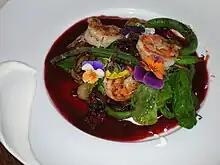 The signature dish of the Herzliya restaurant, located in the Ritz Carlton Hotel, is a tomato salad made with seven varieties of tomatoes, tossed together with olives, radishes, onion, scallion, and fresh basil by chef Kobi Obayon.[8]
