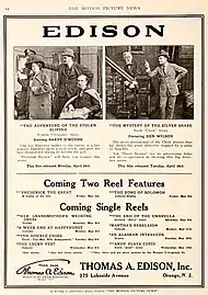 Advertisement for releases by Edison Studios with Yost credited as Barry O'Moore (left image, seated), April 1914
