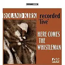 Here Comes the Whistleman is a live album by jazz multi-instrumentalist Roland Kirk recorded in March 1965 at Atlantic Studios in New York, and released in February 1967.[3] It was his first release on the Atlantic label and features performances by Kirk with pianists Lonnie Liston Smith and Jaki Byard, bassist Major Holley and drummer Charles Crosby.[4]