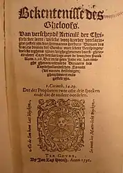 • Bekentenisse des gheloofs, uitg. Jan Zas Hoensz, Gouda, 1591