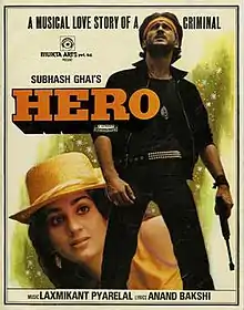 Hero is a 1983 Indian Hindi-language romantic action film directed by Subhash Ghai. Starring Jackie Shroff and Meenakshi Sheshadri, it marked Shroff's debut in a lead role. Its music directors were Laxmikant–Pyarelal.[2] Upon release, it became a blockbuster at the box office and established Shroff as a leading Bollywood actor.[3]
