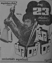 Hero is a 1984 Indian Telugu-language film directed by Vijaya Bapineedu and produced by Allu Aravind. This film starred Chiranjeevi, Radhika, and Rao Gopal Rao in important roles. The film drew inspiration from the 1981 Hollywood film Raiders of The Lost Ark with the opening scene being an exact replica of the latter.[1]