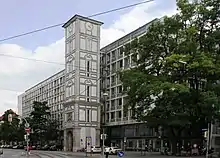 From 1954 to 1957, Neue Maxburg was rebuilt around the surviving tower based on modernist designs by Sep Ruf and Theo Pabst.[1][3][4] The progressive design proved controversial in post-war Munich as outspoken traditionalists rejected the trend of oversized Western-style buildings making their way into the cityscape. In the project's planning stages, some members of the conservative Bavarian Architecture Commission referred to the designs as "hard, American, and not characteristic of Munich."[5]
