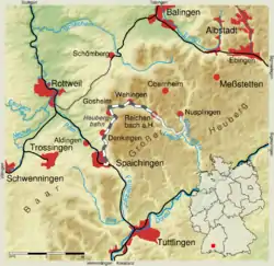 The Heuberg Railway (Heubergbahn) was a 17.9 kilometres (11.1 mi) standard gauge railway line in the German federal state of Baden-Württemberg. The line operated between 1928 and 1966, and ran from Spaichingen, past five railway stations and a stop to Reichenbach am Heuberg. The line was originally planned as a narrow-gauge line through Reichenbach and Egesheim to Nusplingen. It was significant in the development and industrialization of the communities of the Heuberg plateau.