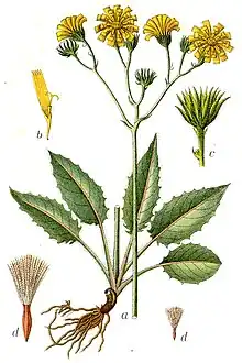 Hieracium sylvaticum, wood hawkweed is a species of flowering plant from family Asteraceae that have many lanceolate and ovate leaves with bended forward teeth.[1]