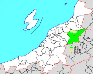 Map showing original extent of Higashikanbara District in Niigata Prefecture: