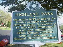 - ↑ James H. Charleton (October 1985). "National Register of Historic Places Inventory-Nomination: Highland Park Dentzel Carousel & Shelter Building, including a 1978 diagram of the park" (pdf). National Park Service.