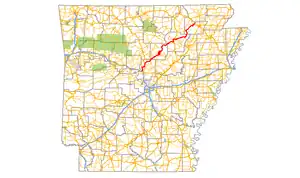 Arkansas Highway 25 is a northeast–southwest state highway in north central Arkansas. The route runs 85.66 miles (137.86 km) from US 64 in Conway to US 63/412 in Black Rock through Greers Ferry, Batesville, and the foothills of The Ozarks.[1][2][3][4]