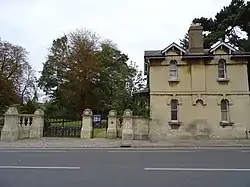 The gates and lodge to the former entrance from London Road have also been Grade II listed, since 1998. The summary states: "Entrance gates to public gardens, formerly the gates to the grounds... ashlar piers and balustrade, wrought-iron gates. Carriage gateway and pedestrian gateway to right set back between short quadrant balustrades".[9][10]