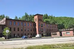 The Hillsborough Mills are a historic textile manufacturing complex at 37 Wilton Road in western Milford, New Hampshire, near its town line with Wilton. The oldest buildings of the brick mill complex were built in 1866 as a carpet-making operation. This business failed in 1874, but the complex was acquired by other textile interests, and eventual saw success producing carpet yarns, and blankets for horses and bedding. The mills were closed in 1970, and have since been adapted for other uses.[2] The complex was listed on the National Register of Historic Places in 2014.[1]