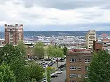 The National Register of Historic Places specifies the geographic area of Hilltop as located within the City of Tacoma and bounded on the east by Tacoma Avenue South, on the north by Division Avenue, on the west by Sprague Avenue, and on the south by the edge of the bluff, which roughly equates to South 27th Street.[2] Hilltop derives its name from its location on a high bluff overlooking Commencement Bay and the Port of Tacoma.