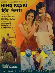Hind Kesari (Hindi: हिंद केसरी, Caesar of India) is a 1935 Hindi action adventure film directed by Homi Wadia, and starring Husn Banu, Sardar Mansoor, Gulshan, Jal Khambatta, Tarapore and Master Mohammed.[1][2] The film was a remake of the 1932 film of the same name, directed by Homi Master for Jayant Pictures. The film did well for a "stunt film" breaking "records" at the box office.[3]