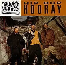 "Hip Hop Hooray" is a song by American hip hop group, Naughty by Nature, released in December 1992 as the first single from their third album, 19 Naughty III (1993). The song spent one week at number one on the US Billboard Hot R&B/Hip-Hop Songs chart, and reached number eight on the Billboard Hot 100.[2] It contains samples from "Funky President" by James Brown, "Don't Change Your Love" by Five Stairsteps, "Make Me Say it Again, Girl" by Isley Brothers, "You Can't Turn Me Away" by Sylvia Striplin and "Sledgehammer" by Peter Gabriel. Pete Rock made a remix that samples Cannonball Adderley's "74 Miles Away". It was certified Platinum by the RIAA and has sold over 1,100,000 copies in the United States.[3]