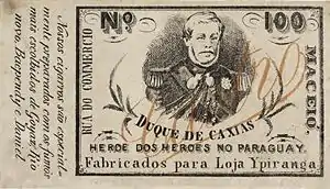 The war's long duration was justified by emperor Pedro II's obstinacy in seeing López defeated for despising him by considering him another Latin American caudillo[10][11] and consequently, it would be necessary to wash the honor of Brazil. It has also been claimed that the emperor's irritation occurred after a proposal by López to marry princess Isabel, but this never occurred and is a later invention by an American author.[12] Later, the official cult of war heroes such as the Duke of Caxias, the Marquis of Tamandaré, the Marquis of Erval and Mitre emerged.[11] While in Paraguay, from the end of the war to the mid-1930s, López was also seen as a megalomaniac leader who destroyed the country in an unnecessary and futile war.[13][14]