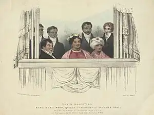 Before his death, Kamehameha selected Kaʻahumanu to rule along with his son. Kaʻahumanu had also adopted the boy.[99] She had the highest political clout in the islands. A portrait artist remarked of her: "This Old Dame is the most proud, unbending Lady in the whole island. As the widow of [Kamehameha], she possesses unbound authority and respect, not any of which she is inclined to lay aside on any occasion whatsoever".[100] She was one of Hawaii's most influential leaders.[101]