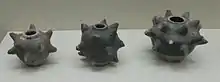 Gunpowder bombs had been mentioned since the 11th century. In 1000 AD, a soldier by the name of Tang Fu (唐福) demonstrated a design of gunpowder pots (a proto-bomb which spews fire) and gunpowder caltrops, for which he was richly rewarded.[29] In the same year, Xu Dong wrote that trebuchets used bombs that were like "flying fire", suggesting that they were incendiaries.[28] In the military text Wujing Zongyao of 1044, bombs such as the "ten-thousand fire flying sand magic bomb", "burning heaven fierce fire unstoppable bomb", and "thunderclap bomb" (pilipao) were mentioned.[18] However detailed accounts of their use did not appear until the 12th century.[30]