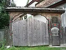 The detailed memoire of the Székely nobleman, Ferenc Mikó, is an important source of Transylvanian history between 1594 and 1613.[171] The development of large estates transformed the Székely society.[172] More than a hundred peasants worked on the domains of the wealthiest landowners.[173] They[note 12] renovated their old castles, or built new castles, strengthening them by walls and towers in the 17th century.[174] Lesser noblemen's manors were mostly decorated by wooden "Székely gates".[175]