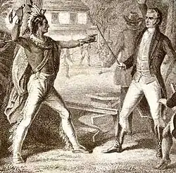 The Americans declared war on Britain in the War of 1812 to uphold American honor at sea,[1] and to end the Indian raids in the west, as well as to temporarily seize Canadian territory as a negotiating chip. Secretary of State James Monroe said in June 1812, "It might be necessary to invade Canada, not as an object of the war but to bring it to a satisfactory conclusion."[2] Despite incompetent government management, and a series of defeats early on, Americans found new generals like Andrew Jackson, William Henry Harrison, and Winfield Scott, who repulsed British invasions and broke the alliance between the British and the Indians that held up settlement of the Old Northwest. The Federalists, who had opposed the war to the point of trading with the enemy and threatening secession, were devastated by the triumphant ending of the war. The remaining Indians east of the Mississippi River were kept on reservations or moved via the Trail of Tears to reservations in what later became Oklahoma.