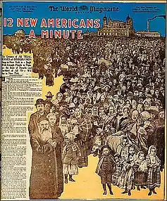In an unprecedented wave of European immigration, 27.5 million new arrivals between 1865 and 1918[2] provided the labor base necessary for the expansion of industry and agriculture, as well as the population base for most of fast-growing urban America.