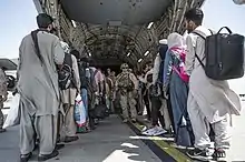 On April 13, 2021, President Joe Biden announced his plan to withdraw all troops from Afghanistan by September 11, 2021, this date being the twentieth anniversary of the September 11 Attacks. The date for US troops to withdraw from Afghanistan was moved forward to August 31.[19] The withdrawal of US soldiers and other foreign soldiers coincided with the 2021 Taliban offensive, where the Taliban defeated the Afghan Armed Forces culminating with the fall of Kabul on August 15, 2021. On the same day, the president of Afghanistan Ashraf Ghani fled to Tajikistan and the Taliban declared victory and the war had ended.[20][21] Following a massive airlift of more than 120,000 people, the US military mission in Afghanistan ended on August 30, 2021.[22]