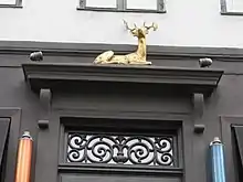 The gilded deer above the door