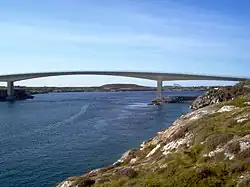 The Hoholmen Bridge (Norwegian: Hoholmen bru) is a cantilever bridge in the municipality of Herøy in Nordland county, Norway. Together with the Åkviksundet Bridge, it forms the road connection between the island municipalities of Herøy and Dønna. It is located about 5 kilometres (3.1 mi) north of the village of Herøyholmen, between the small islands of Hoholmen and Kjeøya. The bridge is 316 metres (1,037 ft) long, and the main span is 120 metres (390 ft).[1]