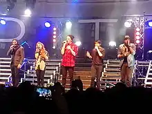Pentatonix (abbreviated PTX) are an American a cappella group from Arlington, Texas, consisting of vocalists Scott Hoying, Mitch Grassi, Kirstin Maldonado, Matt Sallee, and Kevin Olusola. Characterized by their pop-style arrangements with vocal harmonies, basslines, riffing, percussion, and beatboxing, they produce cover versions of modern pop works or Christmas songs, sometimes in the form of medleys, along with original material. Pentatonix was formed in 2011 and subsequently won the third season of NBC's The Sing-Off, receiving $200,000 and a recording contract with Sony Music.[2][3] When Sony's Epic Records dropped the group after The Sing-Off, the group formed its YouTube channel, distributing its music through Madison Gate Records, a label owned by Sony Pictures.[4][5][6]