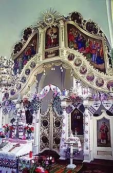 In 1968, the population decreased to 2,339 people and in 1983, to 737 people. After the Declaration of Independence of Ukraine, a ceremony of interment of the remains of Ukrainian soldiers of The Galician Division (14th Waffen Grenadier Division of the SS (1st Galician)), found in a vacant lot and buried with military honors at the entrance to the cemetery.[4] They built a monument to the victims of mass killings under communist regimes (1939–1953) in its place. The Holy Trinity Church (built in 1630) was reopened in 1991 and is active today.