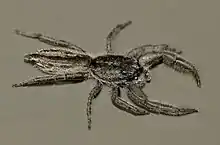 Holoplatys apressus was first described as Salticus appresus in 1873.[1] Independently, Raymond Comte de Dalmas described Holoplatys senilis in 1917.[3] In 2002, S. appresus was moved to the Holoplatys genus and H. senilis was recognized as a synonym.[4]