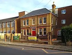 Holy Cross School was founded in 1931 by the Sisters of the Holy Cross Menzingen. The Sisters arrived in England from Switzerland during the early 1900s and set up a convent at Wimbledon (now in the London Borough of Merton). They bought a house along Sandal Road called "Southesk" - over the building's front door was a Latin inscription which read "This is the house that John built" - from Mr John Austine to use as a new school. On 23 September 1931, Sr Christina and two other Sisters opened the Holy Cross Convent School with 5 pupils. The junior department was split into a separate school and moved to new premises in 1971; it is now a private school Holy Cross Preparatory School. Over the years, the school has continuously grown and buildings added, renovated and refurbished. The original house front remains and is the current school's main entrance.[1][2] The school is no longer directly under the Sisters and now mainly staffed by lay teachers but is under the order's trusteeship.