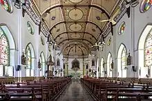 The Holy Rosary Church (Thai: วัดแม่พระลูกประคำ, pronounced [wát mɛ̂ː pʰráʔ lûːk prā.kʰām]), also known as Kalawar Church (โบสถ์กาลหว่าร์, [bòːt kāːlāwàː]; from Portuguese: Calvario), is a Roman Catholic church in Bangkok. It is located in Samphanthawong District, on the eastern bank of the Chao Phraya River. The history of the church dates to 1769, when a group of Portuguese Catholics resettled in the area after the fall of Ayutthaya; the current church building, in Gothic Revival style, was built in 1891–97 on the site of two previous structures.