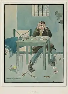 Cartoon by James Whale of a prisoner in "jug" (solitary confinement)