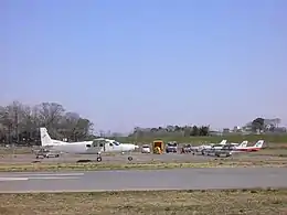 The location of the airfield is 35°58'21" north latitude, 139°31'42" east longitude. The elevation is 11.9 m (39 ft), has a single runway measuring 600 m × 25 m (1,969 ft × 82 ft) and an area of 59 ha (150 acres). It operates from 9:00 a.m. to 5:30 p.m. (or sunset).
