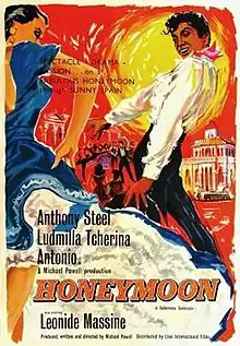 Honeymoon (Spanish: Luna de miel), also shown as The Lovers of Teruel in the United States, is a 1959 film by the British director-writer Michael Powell based in part on the ballet El Amor Brujo by Manuel de Falla. The film stars Anthony Steel, Ludmilla Tchérina and Spanish ballet dancer Antonio, and features Léonide Massine.