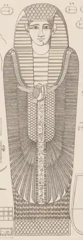 Hornakht was an ancient Egyptian official living at the end of the Second Intermediate Period. His title was royal acquaintance (with right of) access. He is known in Egyptology because his burial was found undisturbed. It was discovered on 21 December 1862 by Luigi Vassalli who worked for Auguste Mariette in Dra' Abu el-Naga' at Thebes. Gaston Maspero published the tomb group in 1892.[1] The burial contained the rishi coffin of Hornakht and a set of objects, some of them inscribed with the names of other officials some of these objects perhaps gifts to Hornakht. There was a throw stick with the name of king Seqenenre Djehuty-aa (Seqenenre Tao of the 17th Dynasty) also inscribed with the name of the king's son Tjuiu. The object provides an idea of Hornakht's dating. A box bears the name of the mayor Minemhat and there was a cosmetic spoon inscribed with the name and title of the mayor of Hierakonpolis Sobeknakht. These people are all most likely contemporary with Hornakht. A vase bears the name of an Idi and dates most likely to the Old Kingdom. Other objects found in the tomb are scarabs, stone vessels, a pair of sandals, a headrest and a gaming board.