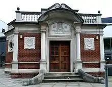 The memorial commemorates the men of the borough who died in the First World War and is in the form of a small red-brick chapel with Portland stone dressings. It was designed by George Lethbridge and dedicated in 1921. The names of the dead are inscribed on plaques inside the chapel. The chapel was renovated in 2007–09 when the old hospital was demolished and a new one built in its place.[1] It is grade II listed with Historic England.[2]