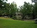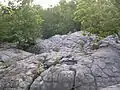 Since it is a natural stone fortress atop a fortress-like mountain, it was used by the Native Americans as a protected village and ceremonial area for thousands of years. There are living and working areas as well as burial areas dating back to the Paleo (pre- Stone Age-12,000+ years ago) and Archaic (early Stone Age-10,000 years ago) periods up to more recent times throughout the park. We also have what may be the only remaining example in the United States of an ancient leaching pit that has seen actual historical use.[1]