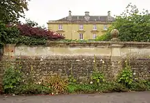 The estate was the home of the Dodington family from around 1790 to 1922.[3] The three-storey Doulting stone house built in 1839 has five bays on the front with a pediment supported by doric columns over the central porch.[1]