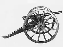 The Hotchkiss revolving cannon was a rotating barrel weapon invented in 1872 by Benjamin B. Hotchkiss (1826–1885), founder of Hotchkiss & Co. It was used by German authorities in the 19th century. It was also referred to as the "Hotchkiss gun". Though superficially resembling a Gatling gun, the internals are very different, with only a single reciprocating bolt rather than a separate action for every barrel.[1] It was a built-up, rifled, rapid-fire gun of oil-tempered steel, having a rectangular breechblock which moved in a mortise cut completely through the jacket. It was designed to be light enough to travel with cavalry, and had an effective range beyond that of rifled small-arms.