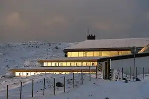 In 1991, the shipping company Smyril Line purchased the hotel and changed its name back to Hotel Føroyar.[7] However the hotel was sold to a group of the hotel's staff in 2005, it was sold for the benefit of refinancing the modern ferry line Norröna. The hotel restaurant, Restaurant KOKS, run by chef Leif Sørensen, serves international and Faroese cuisine, and has been cited by the Nordic Council of Ministers as the "best restaurant on the Faroe Islands".[8] The buffet of the restaurant regularly serves traditional Faroese meat dishes such as skerpikjøt (dried mutton), dried whale meat, dried fish and blubber.[9] The hotel is also regularly used for local and international conferences and events conferences, particularly by organizations operating between the Nordic countries,[10] and weddings. It also organizes horse riding trips into the countryside for its guests.[11]