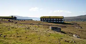A hotel of the same name existed at least before 1968, when it was used for local conferences and meetings by the Viking Congress.[4] The current hotel was established in May 1983 as Hotel Føroyar, later named Hotel Borg, when shipowner Jákup Joensen (also called Jákup í Lopra) bought the hotel.[5] The distinct building, a flat construction with a traditional grass roof and 216 beds, was designed by architects Friis & Moltke from Denmark.[6]