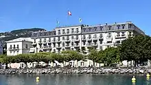 The Hôtel des Trois Couronnes is a hotel in Vevey, Switzerland. It was built in 1842 on the ruins of the "Belles Truches" castle, built in 1376 (1). This building once destroyed left the place to a hotel built by Philippe Franel and inaugurated on May 3, 1842 (3) under the name "Hôtel Monnet" (3), the name of its owner back then. Gabriel Monnet named it "Trois Couronnes" because he owned an inn of the same name, also situated on Vevey's Rue du Simplon (4).