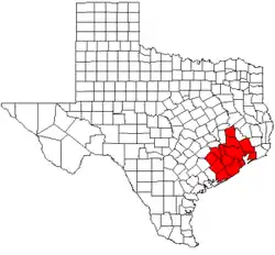 ![]() Map of Texas highlighting counties served by the Houston-Galveston Area Council | |