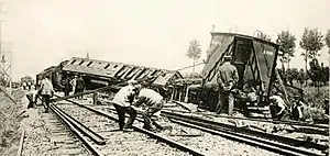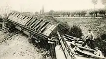 A railway accident between Houten and Schalkwijk occurred in the Netherlands on 7 June 1917 around 4:11 pm Amsterdam time. The locomotive and the first eight coaches were detached from the rest of the train and came to a standstill. Eleven coaches derailed, including one that rolled off the embankment, causing enormous damage.[1] 11 people were injured. Queen Wilhelmina, who was in the train, was unharmed in the accident.