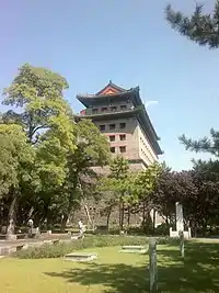 - Long'an Temple at No. 1 Baiqiao Nanli, originally built in 1454, and rebuilt in 1609 and 1708, was one of the largest Chinese Buddhist temples in Beijing's outer city.[10][11] Active worship at the temple ended in the late Qing dynasty. In 1952, the temple was converted to the Long'an Temple Primary School and in 1983 became a children's science center, now known as the Dongcheng District Chongwen Children's Technology Center.[11] The temple complex, nearly 10,000 m2 (110,000 sq ft), is a protected historical landmark.[11] The temple grounds has stone steles, the oldest of which date to the reign of the Jingtai Emperor and two trees over 500 years old.[11]
